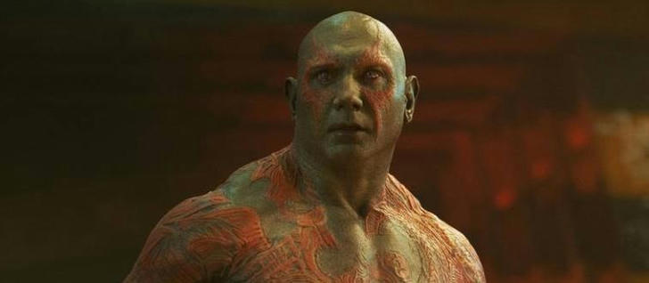 Correct Incorrect Actor (and former wrestler) Dave Bautista embodied Drax the Destroyer in the 2014 superhero film Guardians of the Galaxy. Despite his existing physical prowess, Bautista underwent four hours of makeup to achieve the appropriate muddy-gray tone and scar patterns characteristic of Drax.