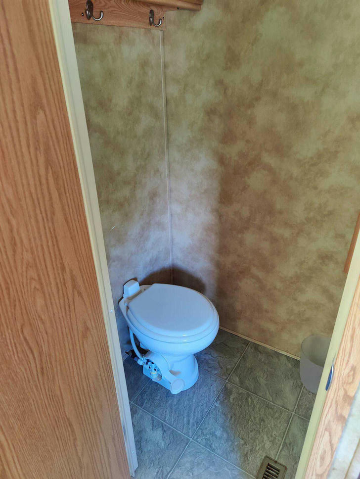 Stepping into the toilet, I appreciate how its design focuses on practicality while maintaining a sense of tranquility. The minimalist aesthetic makes the small space feel well-organized and easy to use. It’s clear that every detail has been considered to provide a clean and efficient area, making it a pleasant part of our RV experience.