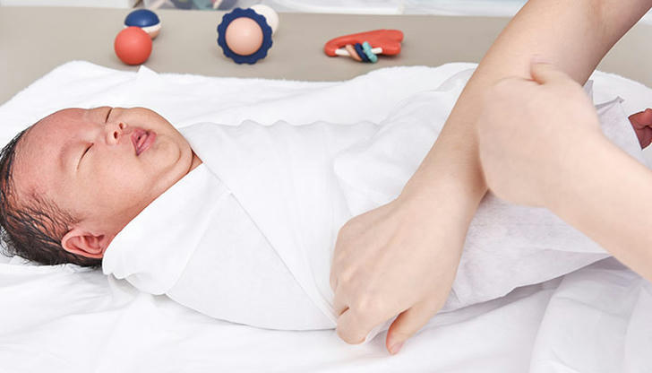 If your baby has been swaddled, don’t take the blankets away. Instead, tuck your baby under your arm like a human blanket. This will keep them warm and cozy and help them to fall asleep faster and stay asleep longer.