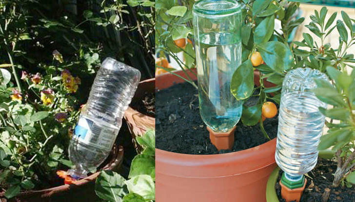 26. Use a Water Bottle to Water Your Plants While You're Away