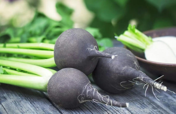 Black radish aids digestive issues from poor bile production and fights colds and sinus troubles. However, eating too much may cause stomach cramps, proving even good foods need moderation.