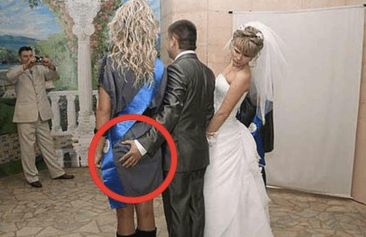 This groom thought the fun should start even before the wedding. While his bride was still in her wedding dress, he got a bit too friendly with another lady. To make matters worse, his new wife caught him in the act. It's unlikely he'll make it through their first night of marriage without a big argument!