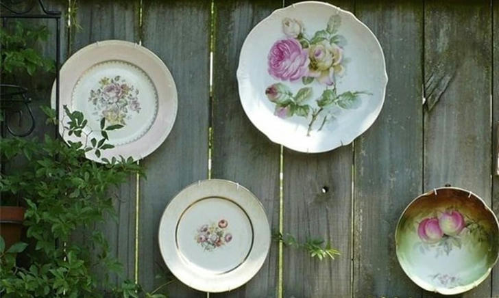 You know those old-fashioned plates you often find gathering dust in thrift stores? Well, now's the time to scoop them up! They're pretty cheap because they're not safe for eating off anymore, but they're perfect for sprucing up your outdoor space. Imagine hanging them along your fence to give it a unique and classy look. You can even break them in half or bury them a bit to create a vintage-style border for your garden.
