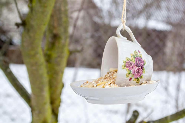 6. Teacups aren’t only great as planters — they also make beautiful birdfeeders.