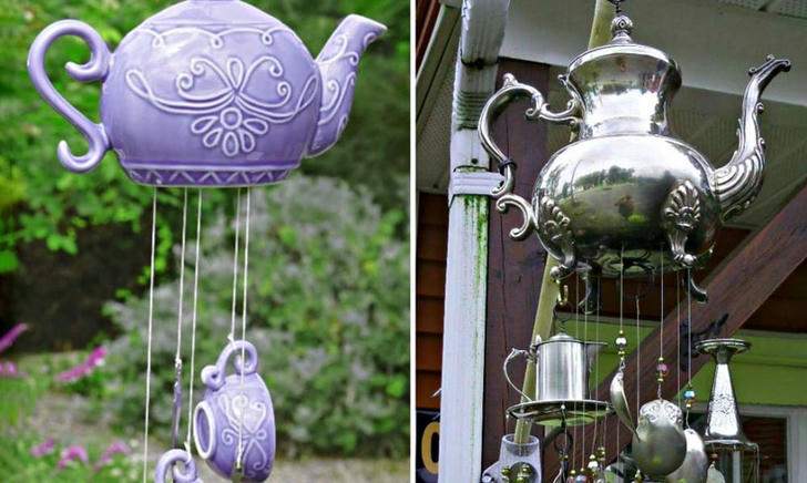 41. DIY Vintage Wind Chime with a Tea Set