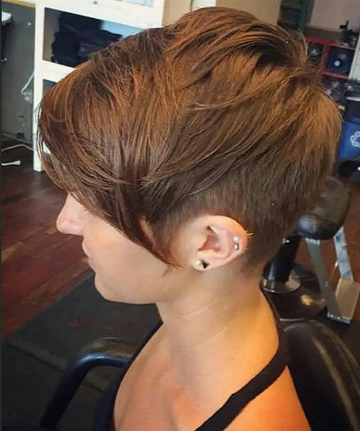 This bold yet practical pixie cut can show off your confidence as a bold woman. The textured pixie cut suits all face shapes and works well with all colors.