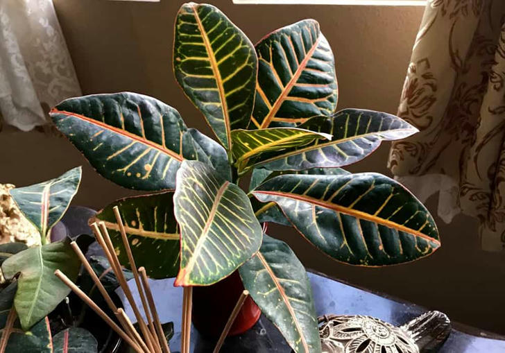 22. Croton plants can grow to enormous sizes with bright fall colors like orange, yellow, and red.