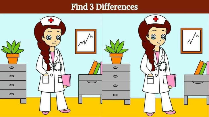 5 Super Fun Spot the Difference Puzzles to Test Your Visual Skills!ShareFacebookPinterestTwitterMail2.Find 3 differences between the nurse pictures in 10 seconds!Next page: Check the full article with solutions below.