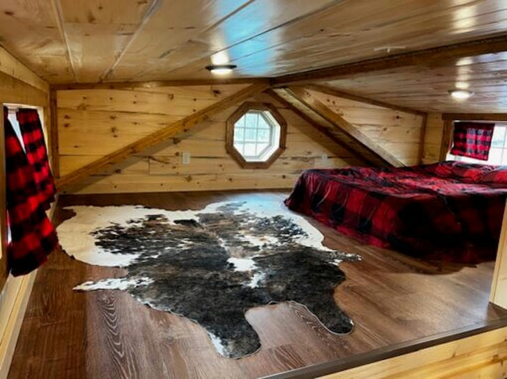 On the side wall, a unique polygonal window allows natural light to stream in, enhancing the room's brightness and ventilation. This distinctive window also adds a touch of architectural interest to the space.